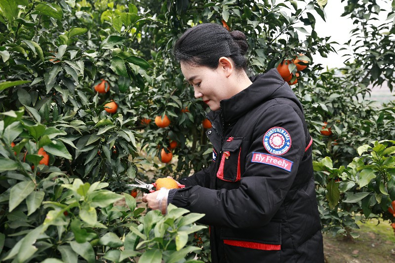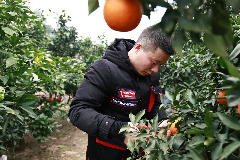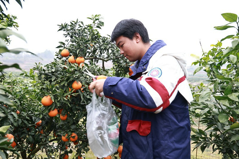 完成花卉种植准备工作后,师生们又来到果园,开展助农采摘活动。大家走进橘林,帮助农民伯伯一起采摘成熟的橘子。